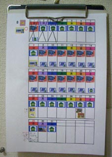 |   出かけるときにはプリントして持っていきます。 2泊3泊の時には、全部プリントして持っていきます。 支援者が悠くんに伝えるためのスケジュールです。 | ||