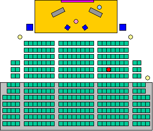 ※緑:座席、茶:ステージ、紫:スクリーン、青:機材、濃灰色:楽器、薄灰色:段差、