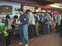 [ 申込み ] JTB教育旅行社さんにツアーの資料請求問合せ〜 資料は、郵送・FAXを選択できるとの事。 郵送の場合は到着まで約一週間必要と言われたんですが、郵送を希望。 ほら、奇麗な状態で資料欲しいから(^^; 4日後、無事資料が届きました。 申し込み用紙を見ると...あ、「同じバスにして欲しい人」を記入する欄がある! って当然か(^_^; 複数の知人の分も同時にFAXで申込みを行い、旅行代金も申込みした日に入金。 ただ... 「同じバスに...」の欄に記入したい人が多かったため、 申込み用紙には記入せず、別紙扱いで一覧表を添付しました。 修正があれば、その都度際送付(FAX)、と。 イベントやメールなどで 「バス、どうします? 一緒のバスにしませんか?」 と相談していたので、申込みをした段階で、30名を超えていました。 この後も若干増えそうだから...バス一台埋まる?(^_^) 申込みで反省しないといけなかった点がいくつかありました。 一覧表作成は良かったんですが、知人の分を立て替え払いしています、 というのを文章で知らせてなかったのが失敗でした。 # 電話では伝えてあったのですが... 11月2日(金)に、 「どうも、一名分余分に入金されているようなんです」 とJTBさんから連絡があったし(>_<) その日の内に無事解決したんですけど、ちゃんと伝えておかないと駄目ですね φ(..) [ 前説 ] 前日の雨が上がり...と思ったのだが、起床した時はまだ振っていた。 日の出の時間まであと90分ある(笑) 装備品を再チェックし、軽く朝食を済ませ、出撃! イベント開始-3時間に行く!という事で、集合場所に到着したのは6:10。 うっすらと空が明るくなってきた。集合場所...そういえば、去年バスツアーに参加したときもここだったなぁ(^^; ぽつりぽつりと参加者が! 9:00前後になると、かなりの人数が集合場所に集まっています。 でも...300名にはまだまだ足りないような気が(^_^; 忘れぬうちに、という事で、余分に買っていたバナナホルダーを知人達にプレゼント。 集合場所には4号車から7号車のバスが停車してて、 1号車から3号車はちょっとだけ離れた場所に停車してました。 新宿センタービル前は300名の参加者で一杯! 警備員から「通行の邪魔になるので移動してください」と注意された。 確かに歩道ではなく、センタービル前付近に居たからなぁ... という事で、1号車が停車している場所に移動。 あ、添乗員さん達が打合せをしている! という事はいよいよ! 記念に、と1号車を撮影! すると、受付が始まりました。