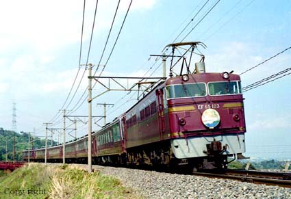 サロンカーブームのさなか、岡山監理局からも専用機付きで「ゆうゆうサロン」がデビューした。シックな好みの塗装であったので、是非撮りたいと思った。関ケ原の大築堤にて待ち受けていると、雲が掛かりそうでハラハラした。いまではオレンジ一色のものすごい色になってしまい、まだ一度も見ていない。