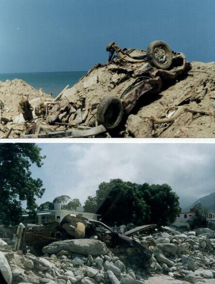 この下は市街地だった。それぞれの石が人より大きい。それが大量に流れてきて、家々も人も一瞬にして埋まった