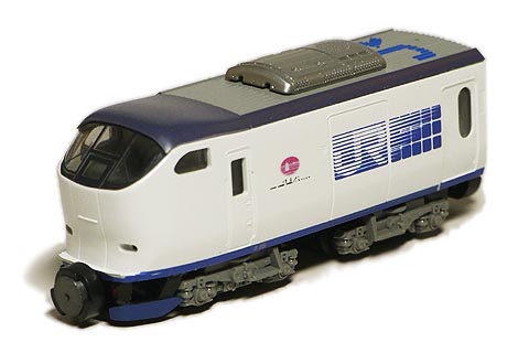Nゲージのクハ281をショーティー化しています。 切り継いで塗装し直しはせずに、特徴あるロゴとJRマーク付きの大きな荷物ドアを残してみました。