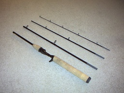 最も最近購入したロッドで、海外出張に持参する為に購入。4ピースタイプのパックロッドだが、実は俺にとって初のマルチピースロッドだったりもする。ライトアクションは感度も良好で使いやすく、下手なワンピースよりは感度も良くパックロッドと侮れない。ライトアクションだけにディープクランクはちと厳しいが、ペンシルベイトのアクションは思いのままといった感じ。オリジナルはグリップが細くてイマイチ気に入らないので、Fujiのコルクグリップに交換して使っている。現在最も多用しているロッドで、お出かけの際はとりあえずトランクに忍ばせておくのだ。