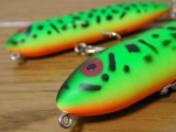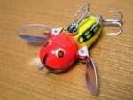 ポッパーならチャガーJr.もいい。俺は個人的に、Lucky13よりも派手でノイジーなチャガーの方が好き(^^)。野池でむこう岸すれすれにキャストし、波紋が消えるのを待って、最初の2,3回のポコポコがスリル万点であり、勝負どきなのどぁ。 トップといえば、トォピードも忘れてはならん。さすがにマグナムトォピードはデカ過ぎな気がして持ってないが(スマートアレックも似たようなものかもしれないけど...)、ベビートォピードには何度もいい思いをさせてもらった(^^) ノイジーの定番、クレイジークローラ。非常に完成度の高いプラグだね、夏の野池には欠かせないプラグの一つ。 |
