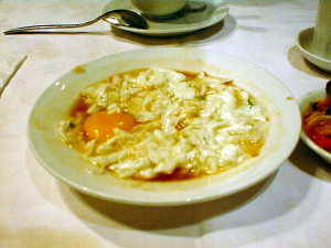 | 卵の白身とかにをふわふわにいためて あります。黄身と混ぜて(美味) |