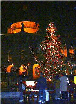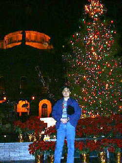 | 立法会大楼前のクリスマスツリー(右はスティーブン氏) | |