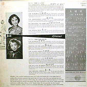 このLPは多分アメリカのメジャーなレコード会社から初めて出た中国歌謡のLPです。