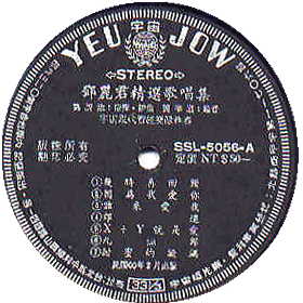 | ここからはテレサファンのバイブルともいえる「没後一周年追悼展」の 記念本に未掲載のいくつかのレコードをご紹介します。 上のレコードは「幾時再回頭」というタイトルのレコードです。 これは「宇宙唱片」のプレスなのですが、香港で発売されたものの様 です。記念本のディスコグラフィーの中では香港麗風についてはふれ ているのですが、この香港盤宇宙についてはまったく触れられていま せん。多分このほかにもいくつかの香港盤が存在するのではないかと おもわれます。 |