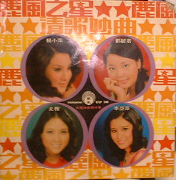 | 次はオムニバスで「麗風之星」というアルバムです。 楊小萍、尤雅、李亞萍そしてテレサの4人のオムニ バスアルバムです。全部で20曲のうちテレサは5曲 歌っています。(4人とも5曲ずつです。)ジャケット内 側には歌詞も掲載されています。こういった形式の アルバムはEPも含め色々と出ていたようです。 (実はこれはジャケットだけしか持っていないのです) 買ったときに良く確かめなかったのですが、あとで みたら中はテレサの別のアルバムでした!) |