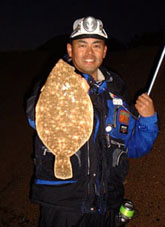 どうやら、40センチ・オーバーのマコガレイを釣ったらしい。エサはやはりチロリとの事である。