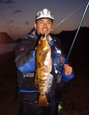 私のほうは、やはりバラシたのがまずかったのか、アタリが遠い。0時前に、誘いをかけた直後に餌に飛びついてきた28センチのアコウを最後に餌取りもいなくなった。