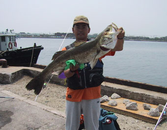 それでも強い引きに耐えながら、時間をかけて力糸をリールに巻き込むところまできた。潜ったまま正体を見せないが、スズキが足元近くまで寄ってきていることは確かである。