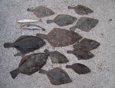 17:00 渡船にて撤収。帰港し、一本さんのマコガレイを見せてもらう。やはり、これくらいになると、4cmの差で見える大きさが違うようだ。大きい。特に顔が大きい貫禄のあるマコガレイである。
