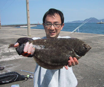 15:20 ばんちさんの携帯電話が鳴る。一本氏からだ。「先ほど、やっと47cmのマコガレイを釣りました!」。時合はやはり昼から夕方だった。