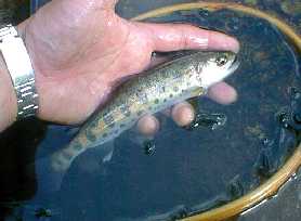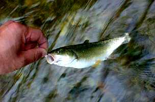 下は、本命中の本命堰堤でなんとか釣ったヤマメと目測27センチのウグイ