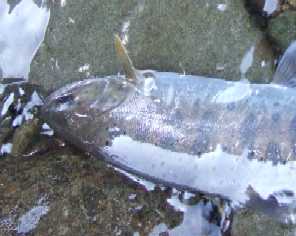 | で、某所。でかいのスプークさせて、手直のライズを獲ったら メチャンコのセッパリ!! いいんじゃない〜、こいつ良くファイトしましたん! |