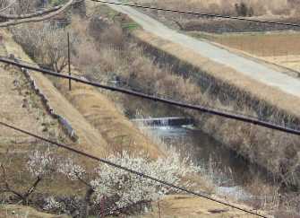 | こーんな里川も彷徨いました。景色は抜群です。 梅(?)の花は綺麗でした。 |