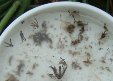 | こんなの喰ってたお魚。 釣れたフライとマッチだハッチでありました。 |