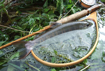 | 5日後にはこんなサカナ。 増水の荒瀬ででました。しかもスレ、背掛かり。 ファイトは凄かった。つまり釣れてないということです。 増水はきびしいのでした。 |
