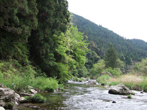 | この超有名河川は、河口以外、寸断の全くないとても健全で美しい川。 解禁に何度か来た事がある程度で、この時期の状況は全く不案内ですが、 持ち合わせの知識と”感”で、、、 「まあ、アソコらあたりが先ずはあやしいべ」と橋を覗き込んだら プカーッとアマゴが二匹浮かんでいる! 「おおお!まじ!!」 キクちゃん情報恐るべし、凄いよー! 転げながら車にもどって、シューズの紐を結ぶのももどかしく着替え、 川岸に立つも、どうやってアプローチすりゃいいんだか、途方にくれるわけで、、、 |