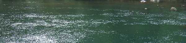 | わたしは2日間のこの手の釣りで 集中力が枯渇してしまい、 「えーっと、ではここのサカナのゲットよろしく お願いします! 私はちょっと、山へいって息抜きをしてきます」 っと対峙を辞退して左図のような川でリフレッシュ であります。 |