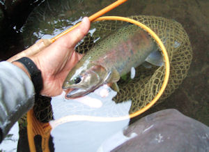 | で、ふと立ち寄ったプールを覗くと、、あっ!戻ってる。 2週間前、大やらかしでラインブレイクしたアイツであります。 ヤマメの性かねえ、またライズしている。 しかし、思い切り挙動範囲が狭まっています。 ヒットの確立は絶望的。 フライ投入できる場所にやってくるのは2分に一度で10秒間のチャンス。 フライは先々週の反応から見てこの手のタイプと検討はついているけれど、 さすがに少し変化を与え、ちょっとモードを変える必要がありそう。 ヤマメが完全に下流に行っていてキャストの影響の無い間にメジャーリングと キャストのリハーサルをしておきまして、アイツが登ってきて影が見えたとき スポンと投入して、スポットにやってきたヤマメが既にあるフライを見つけパクリ!! となって大成功、、という算段を考えたりしてました。 そうしたら、本当にそうなった。 完全に敗者復活戦を奪取した感であります。 こんなことほとんど記憶にありませんです。 しかし、コイツを探しにやってくる、、FFMの性かねえ。 |
