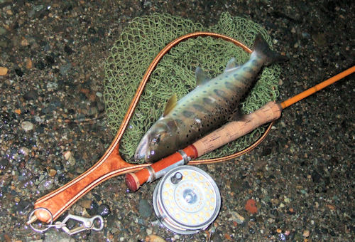 | いよいよイブの季節になってきました。 イブはいいですねえ〜。 一日の終焉に向かって時間がどんどん圧縮されていく。 予想したポイントの射程範囲に起こる幸運(ライズ)を 切ない気持ちで待っているのは、なかなかMっぽいです。 本日は某氏よりの情報で、、、、 某氏:「某所がいいそうだよ。でかいですよ。だまされたとおもって、、、、」 伴:「そうお、、そうかい、、、、」 確かにプレイブからポチポチとライズがありまして、だんだんと いい雰囲気のライズが増えだし、ランランと瞳は見開かれ、鼻息荒く、 先入観とあいまって、気合は絶頂に達したわけです。 そして、シュパッ!(やった!) クンクンのあと吹っ飛んできたのは5センチヤマメ。 「すいませ〜ん、どうなってるんでしょうか〜」 しかし、強欲なFFMのお門違いの台詞に自ら失笑し、夕闇で一人 ヘラヘラと声をだして笑ってしまった。 なんだか知らないがツボにはまって愉快だった。 |