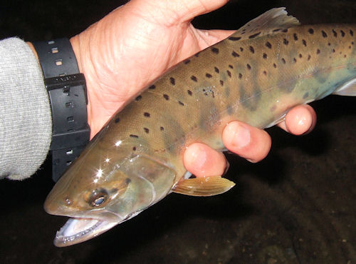 | しかし、その後、まあ良型のヤマメも釣れて、、 |