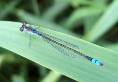 | 魚がパッとしないので、川岸を眺めていたらアオモンイトトンボが ピロピロ飛んでいた。 本当に綺麗な色です。惚れ惚れして見入ってしまいますね。 |