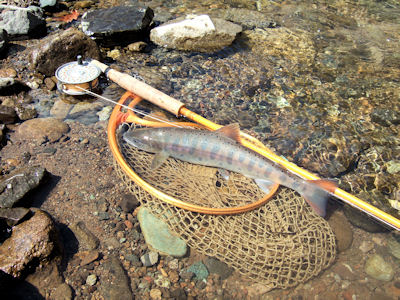 | ダメなのは分かってはいるのだけれど、 こうゆう中での探索は、これはこれで、ノンビリ、ゆったり 川を歩けて、非常にリラックス出来るんですね。 あ、でも、安全なところだけ限定ですよ。 ほとんどのエリアは、結構ヤバイ、危険です。 というわけで、まるで山岳渓流です。 魚も、ちいさいのがチラホラと出ますが、本命の気配は やはり無く、もう、そろそろ帰ろうかなと思った時、 あ、あそこ、あそこだけやって帰ろうと、お邪魔してみたら へー!こんなところに居るんだ。 |