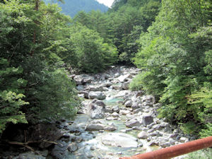 | 確かに綺麗です。 高標高で、明るくて、開けてて、大石が白い。 そこ石はしっかりしていて、随所に深みがあって 透明な水を青緑に見せています。 いわゆるイワナの典型的な川です。 |