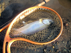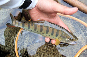 | しかし、イワナはすれている。 すれっからしのヤマメ以上に警戒心が強くなっています。 浮いてる岩魚もフライ、ティペットを確実に選別判定し、 遁走しますw。 なんとか一尾釣って、終了。 林道の散歩に趣を多くし、組み立てると楽しめるいい川でした。 翌日からはいつもの飛騨の川。 |