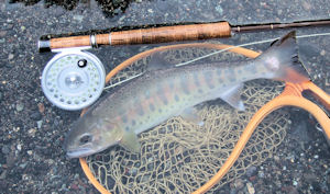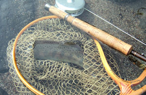 | 難行苦行は続きます。 某ポイント、あああっ!浮いてる!! 今年はメッタにないことで、つんのめりながら駆けつけて狙う。 先ず、巻き返しに定位してライズしている所にスポッとフライを浮かべたら パクって喰ったが、あわせたらスポッと抜けた。ゲゲ!あーやってしまった! 少しすると今度は流芯に移動して、ライズ再開。ドキドキ。 ここで、より小さなフライにしたら、ドラグ開始時にパクッでスッポ。 これを二回。 あっれ〜、なんでぇ〜;;)。 と、家族連れの釣り人タチがどわっと押しかけてきて、ライズ終了;;)。 ゲゲゲ〜、これはマズイ。 動揺をおさえきれないまま、移動。 昼食を食べて、いろいろ回って舞い戻ると、誰もいなくなっていて、 覗くと、また、浮いている*^^*。 今度は、上流のリフルの中、さらに移動している。 こーれは、獲れるでしょう!!と、一流しするとパク→スポッ!! これをやはり二回。 うっそー!ぐわ〜、これは、、、なーんと言うことだ〜。 もういちど、今度は大き目のフライにチェンジしてエイッと流すと、 ぶわっと反転しながらパク!→スポッ!!はぁぁぁ〜。 これはひょっとして口半分が無いのか、、、でも、さっき確認してみたが、 確かに、正常の体をしていた。 ちょっと背筋が寒くなってきた。 |