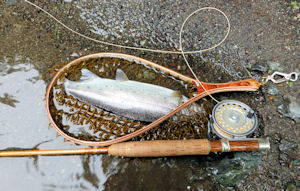 通らずの落ち込みに下られ、落ち込み脇のわずかなスリットに激流の中移動し