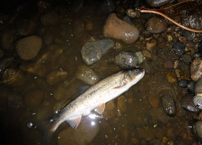 | えー、故郷で子供の頃の釣り場を眺めて、アブラハヤやウグイの 話をしてて、ウグイを貶めるような表現をしていたら、遠く離れた この地に恐ろしく育った彼が降臨しました。 |