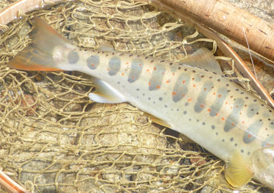 | こうゆうハンナリした朱点の明るい色合いのアマゴは、本当に綺麗です。 |