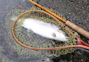 | 春分の日は名古屋から卒業式へと激動で、やっとこ釣りにいけたのが 本日になりました。 相当にコテンパンにされたポイントをうろうろ、、。 本日も硬くゲット出来るはずの良型をばらす。 (プールで結構ファイトした後にスポッ!、、、、 、、、速い流れの筋で太いティペットにしてガツンとフッキングと同時にズルッ!) おっかしいなあ、なんか調子悪い〜。 もう帰ろうかなあ、、。 あ、ちょっとアソコだけ覗いてからにしようと移動。 |