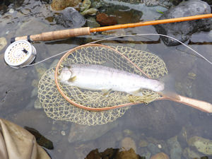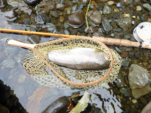 | 虹鱒かと思うほど引っ張られた。 良いヤマメ。 |