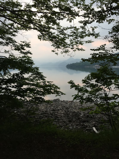 | 到着5:00. 無風、ベタ凪、ノーライズ、魚っ気とりあえず極少。 終了の景色は水墨画の様でありました。 今期チューゼンジの季節進行が少し解ったような気がしました。 来年は来るぞー!! 総走行距離530km。流石に疲れた〜。 |