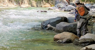 | 独特の水色ですね。 GWよりずっと狙い易いのですがスレ気味です。 こうゆうフリーストーンでは水量が一際強く影響を受けるわけです。 |