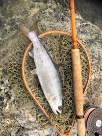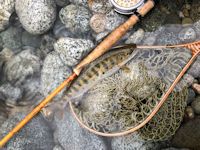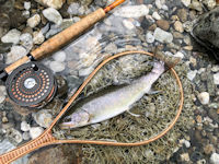 | 釣りができるだけ幸福(まし)だね。川に向かってフライを投げると サイズによらず一生懸命になれます。 |