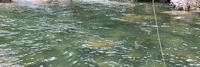 | 4日目。 本流は怒涛の流れで太刀打ちできず、支流へ逃げる。 ここだって本来はチョロチョロの流れなのだが、岸からボーっと眺めていると 開きでライズが発生。 |