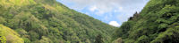 | 上流に移動。 こちらも平水に戻り、釣りやすい。 小さなヤマメが飽きずに顔を出し、「おーい、お父さんはどこなんだーい」 とボヤキながら釣っていたら右岸の良い深みから魚影が飛び出しフライを咥え ローリング!やった、こりゃ本命だと体に電流を流した途端、ポロッ! ぎゃー! バレ6号です。こりゃーまずいな。 |