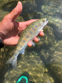 | ハッチが始まり、流れと緩流帯の際を流すと激しくアタックしてきたがクルクル回る に食いつけず終了。 そろそろ帰らないと。 |