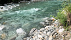 | 底石があって岸には隠れ家の大岩がある。 そこが流れを集めている。 先日の夕方はハッチと連動したライズもあった。 いわゆる絶好のポイントです。 |