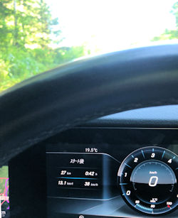 | 朝の山のドライブは大変気持ちがよい。 車は少ないし空気は良いし気温も御覧の通り。 車窓を全開で釣り場に向かうひと時はひょっとしたら一番快適かもしれない。 デカいフライで釣る釣りは楽しく10分おきに感謝の念が想起される。 |