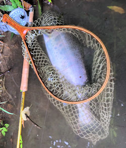 | こんな釣りもそうそう続けては行ってられない。 身体からの反撃の気配があるからである。 いつもは平日と同じ時間に起床し同じ時間に玄関を出る 規則正しい釣りをしている。 但し今迄より勤務時間は随分短くなった。 精神が集中できる場所と時間だけの釣りだ。 某プール。 ニジマスがいる。 少し小さな魚影がひとつある。 神経質なライズである。 まず、釣れないやつだ。 ニジマスと遊んでいたらライズが盛んになってきた。 そっちに投げるとスプークし何処かへ行ってしまう。 またニジマスと遊ぶ。しかしこいつも釣れない。 遊ばれている感、バリバリだ。 もう帰ろうとしたら下流からライズが上がってきた。 フライを替え魚の動向を感じ投入! 喰った!ヒット!まじか! ローリングというよりひらを打つファイトが長く展開。 数度ドラグを引き出すジェットランもしてくれた。 |