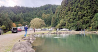 | そんな今年のコンディションにやや気持ちが萎えていたところにFBに懐かしい管釣りが アップされた(MKさん)。 栃木の上永野フィッシングリゾート。 昔は極ありふれた鱒が釣れる、難しくも簡単でもないごく普通の釣り場だった。 景色は良いけれど釣りそのものの趣向を重んじていたためだんだん行かなくなっていた。 しかしFBアップによると魚体が極めて美しく水質も透明度高く良好の由。 距離にすると308clubの2/3位でぐっと近い。 こりゃ行くしかない。ということでさっそく次の休日に出向いてみた。 到着すると駐車場は満車に近く、広いポンドの周囲には5〜6m間隔で釣り人がいる。 人気の高さを示しているのだ。 平日とは思えぬ。 |