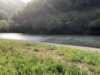| 宮川のダブルハンドのエリアに行ってみるとアングラーが三人。 年季の入ったキャストを繰り出している。 これなら股関節にも負担が少ないと判断し遊ぶ。 ウサマとニジマス。 道の駅泊。 |