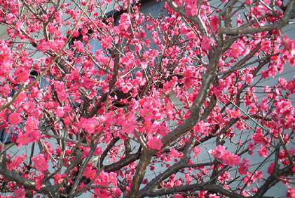 紅梅の 色に魅せられ 回り道